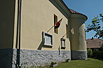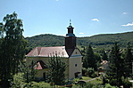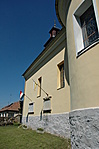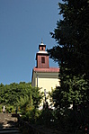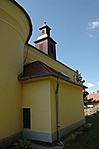 Magas dombon szabadon állo, keletelt egyhajós épület cseréppel borított nyeregtetővel, sa tetőnyugati szélén fa huszártoronnyal. A nyugati homlokzat , egyszerű tagozatok nélküli. Alul magas lábazat, benne egyszerű kőkeretes egyenes záródású ajtó. felette fehér vakolatkeretelésű ablak látható . Feljebb barokk párkány. A trapéz alakú oromzatban szintén fehér vakolatkeretezésű félköríves ablak figyelhető meg. A huszártorony alsó szintje fából készült, oldalain szegmensíves záródású lécrácsos ablakok. e felett bádogozott szoknya, majd a szintén fából készült felső toronyszint következik, az alsókkal megegyező , de kisebb ablakokkal. A kúptető bádogozott és rajta kereszt. A szintén függőleges tagozatok nélküli északi homlokzaton egy vakolatkeretezéses állótéglány ablak figyelhető meg. A homlokzathoz kis sekrestye csatlakozik , egyszerű ajtóval a nyugati falban. A déli homlokzat két hasonló ablakkal rendelkezik , valamint a nyugati végén - mára már elfalazott- harmadik nyílással . A nyílások alatt két világháborús emléktábla található. A háromkarélyos szentély déli karélyában egy, a keleti kerély déli oldalán szintén egy kisméretű, vakolatkeretezéses téglány ablak található.
