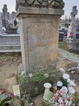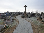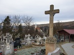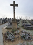 A temető területén, a főbejárattal szemközt, négyzetes hasáb alapzaton sziklát imitáló, kisebb halmon emelkedő kereszt, korpusszal. Az alapzat elülső oldalán ívesen levágott sarkú keretben felirat. A keretmotívum a felirat nélküli oldalakat is díszíti.