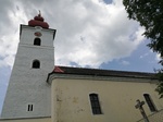 Település déli részén, dombtetőn, út mellett, arra merőlegesen, szabadonálló barokk templom, nyugati homlokzata előtt gótikus toronnyal, téglalap alakú hajóval, a hajónál keskenyebb, ívesen záruló szentéllyel és a szentély déli és északi oldalához csatlakozó 1-1 földszintes sekrestyével.