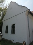 A merőleges szárny orommezői törtívűek, kőperemesek, a középtengelyükben fönt szalagkeretes körablakkal.
