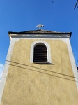 Szabadon álló, négyzetes alaprajzú, emeletes, sátortetős harangtorony, felső részén, mind a négy oldalon, zsalugáteres hangnyílásokkal. Bejárata a DK-i oldalon. Három harangja közül a legkisebb 1702-ből való.
