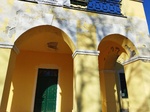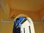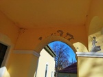A homlokzat előtt nyomokban látható még a 19. században épített talán kétkarú feljáró, egyben erkélyépítmény nyomai.