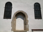 A hajó déli falában, az 1. És 2. Tengely között csúcsíves, tagozott kő kapukeret, maga a nyílás befalazva.