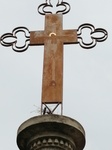 Az oszlop tetején karéjos szárain áttört kovácsoltvas kereszt áll.