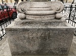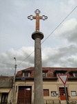 Vasráccsal körülvett négy kőlépcsőn áll, négyzetes talapzata ezen elöl 1841-es évszám. Ezen emelkedik a négy gömbön nyugvó, csigákkal díszített lábazaton a simatörzsű oszlop, melynek tányérja alatt fogrovatos öv fut körbe.