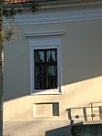 Oldalhomlokzata kéttengelyes, hasonló ablakokkal, elfalazott és meghagyott új nyílásokkal.