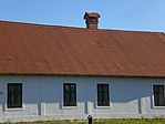 Véghomlokzatai kéttengelyesek, a falsávval elválasztott oromzatot közös szemöldökpárkányokon ülő, két, szalagkeretes állóablak, s felettük egy kis padlástéri ablak töri át.