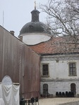 A Rudolf-szárnyhoz kapcsolódó lovardát, márványistállót és "udvarmester épületet" a díszudvartól egy, jelenleg pusztuló vakárkádokkal tagolt kőkerítés választja el.