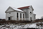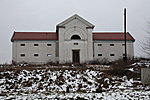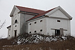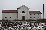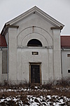 Az ajtó fölötti évszám eltűnt, illetve alig kiolvasható. Az egész épületen tégláig lemállott a vakolat. Középen falpillérekkel keretelt oromzatos rész. Az övpárkány felett kettős félkörívben kis fektetett ablakok.