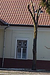 Az épület fölött alacsony sátortető emelkedik, a fő épületszárny tetőgerince kissé magasabb, mint az oldalszárnyaké.