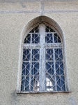 Egy homlokzati tornyos. A főhomlokzatát csak lizénák tagolják, főpárkányba átmenő fejezettel.