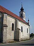 Az oldalhomlokzatokon 3-3 félköríves ablak. Keleti falánál II. világháborús emlékmű. Kőkeretes, késő barokk kapu, eredeti vasalású fa ajtószárnyakkal.