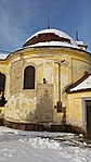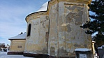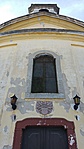 Kőből faragott, szalagkeretes, félköríves záradékú ablakok, a hengeres falmezőt tükrök tagoljak, kupolafedés.