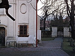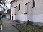 Homlokzata középtengelyében tagolt fejezetes pilaszterekkel közrefogott enyhe kiülésű rizalit. Törtíves zárókővel díszített kőkeretes kapuzata felett szegmensíves keretezett lapos fülkében festett ikon. A rizalit mellett a homlokzat két oldalán egy-egy záróköves, egyenes záródású ablak, fölöttük egy-egy ovális vakfülke.