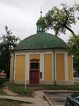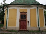 Különálló, centrális alaprajzú, barokk kápolna. Négykaréjos alaprajzon épült dob nélküli , alacsony kupolával fedett épület. Ny-i és D-i bejárata felett téglányalakú ablak, felette félköríves oromzat. Oldalfalait falsávok közötti tükrök tagolják. Kapuja szép apácarácsos, kovácsolt vas munka a 18. sz-ból. Eredeti, jó állapotú barokk kő kapu keret-