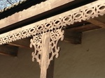 Fűrészelt tornácoszlop, dísz és párkány. Utcára néző két ablak.