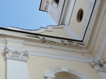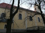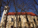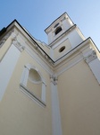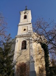 Szabadon álló, középtornyos épület. A torony tömegével a főhomlokzat előtt áll. A főpárkány magasságáig oszlopszéken álló, gazdagon díszített korintizáló fejezetű pilaszterek tagoljak két oldalt. Kőkeretes, egyenes záradékú kapu. felette vakolt keretes, zárókődíszes félköríves zárású ablak. Félköríves lezárású szentély.