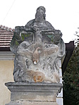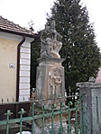 Szentháromság-szobor, barokk eredetű, átalakítva. Posztamensén felirat: 1616 + 1931.