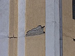 Állapota változatlan: a bejárat fölötti málladozó vakolatfoltok továbbra is megvannak.