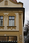 A rizalitok lizénákkal keretezettek, a lizénákon stilizált növényi és női fejes stukkódísz.