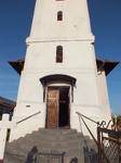 Bejárata a hosszház Ny-i oldala elé épített torony alatt nyílik. Egyenes záródású bejárata felett félköríves, zsalus ablak, egyenes szalagpárkány választja el a harangszinttől, melyet félköríves ablak tagol, fölötte félórapárkány húzódik. A torony sarkai élszedettek, a sisak párnázott réz.