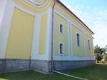 Nyugati homlokzata elé lépő torony földszintjén egyenes záródású, kőkeretes kapu. A tornyot lizénák szegélyezik. A kapu felett szegmensíves záródású, nagyméretű szalagkeretes ablak. Felette golyvázott főpárkány.