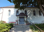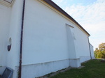 Déli homlokzatán 5 csúcsíves ablak, középrészen előreugró portikuszból nyíló bejárat. Északi oldalán nincs nyílás, középrészen egy támpillér. Nyugati szentélye egyenes záródású, sarkain két támfallal, két ovális alakú ablakkal. Keleti homlokzatán, a templomtest előtt torony, a torony két oldalán kör alakú ablak.