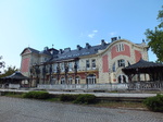 A parkban szabadon álló, összetett alaprajzú épület. Déli főszárnya kétemeletes, a többi alápincézett épület.