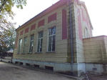 A földszint és a rizalit egésze sávozott. A földszinten egyenes záródású szalagkeretes ablakok. A középtengelyben modern bejárati ajtó, beton előtetővel. A bejárat fölött félköríves falmezőben egyenes záródású, nagyméretű, osztott ablak, gazdagon díszített szemöldökkel, felette félköríves osztott ablak. A rizalit földszinti ablakai felett stukkódísz címerábrázolással.