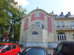 Északi homlokzata lizénákkal tagolt, sávozott. Földszintjén nagyméretű egyenes záródású ablakok. A középtengelyben erkély.