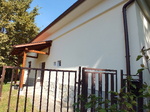 Bejárata az épület nyugati oldalán nyílik, ide újonnan épített, nagyméretű ereszes betonterasza futó lépcső vezet.
