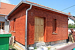 A vakolt oldalhomlokzat oromrészét két kis téglány alakú ablak töri át. A hátsó homlokzat, mely a szőlőhegyre néz, teljesen egyszerű, vakolt.