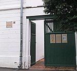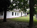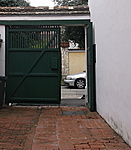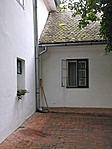 A házba a főhomlokzattól jobbra lévő, vízszintes szemöldökkel, vakolt pillérekkel kialakított fakapun jutunk át. Az udvar bal oldalán földszintes hosszan elnyúló épületszárny húzódik.
