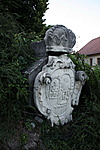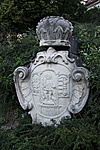A mészhomokkő alapanyagú, későbarokk stílusú címer jelenlegi elhelyezésében két részre bontva látható.