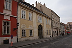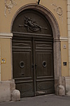Utcai homlokzata öttengelyes, a mintázott falsávok három mezőre osztják. Kőlap lábazat, kapuja a középtengelyben áll, félköríves záródású, profilos kőkeretben, kerékvetővel, vállpárkánnyal, ívmezőjében kőfaragványú koszorúdísz. Benne kétszárnyú eredeti klasszicista fakapu, fix íves mezőjében fából faragott Cupido dombormű. Alul ki-be nyíló ablakok díszes köztesráccsal. Fölöttük boltvállpárkány, azon ívezet, az ívezetben stukkó koszorú motívummal. Az emeleten hasonló ablakok, a mezőben végigfutó könyöklő párkánnyal, füles húzott keretezéssel, üres szemöldökfrízek párkánnyal zárva. Homlokzatát egytagú konzolos főpárkány zárja, függőlemezében rozetták. baloldalt keskeny, végig felfutó középkori kőfalmaradvány. Nyeregtető, hódfarkú cserépfedés, ökörszem ablakok. A korai klasszicizmus szép példája.