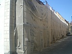 A tér felőli homlokzat tökéletesen megújult, most a szomszédos utca felőli soros a tatarozásban. Az eddig elkészült részek mindenesetre ígéretesek.