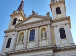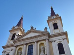 Püspöki Székesegyház (Sarlós Boldogasszony), késo barokk, 1791-1814. Tervezte: Hefele Menyhért, fopallér: Anreith János. A fooltár glóriáján - amelyet Hefele tervezett - A Prokop által készített barokk szobrok állnak. A hátsó falon barokk sírkövek, 18. sz. A templom elott Szentháromság-szobor, neoromantikus, 1938., Hudetz János alkotása.